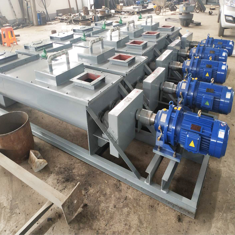 單軸粉塵加濕機的殼體采用的為圓筒樣式,螺旋軸采用的是單根樣式,除塵器處理回收的粉塵由星型卸料閥將灰塵送入單軸粉塵加濕機體內(nèi),由螺旋輸送葉片推入加濕攪拌主筒,在螺旋體均勻的拌料下,水噴淋均勻注入料內(nèi),在勻速攪拌的作用下,使粉塵加濕,加濕后的粉塵在多柱螺旋線性的推力作用下,從出料口緩緩送出,振動裝置間歇性的工作,使拌料筒周壁等變幅振蕩,將加濕后的粘性粉體與金屬筒壁脫離,_送至卸料口排出。單軸粉塵加濕機是混合擊打加濕,由振動系統(tǒng)四部分組成,配以電控盒供水系統(tǒng),整體固定在底座上,筒體由四組彈性元件支撐著,通過激振裝置,使整機在運轉(zhuǎn)過程中筒體高頻振動,單軸粉塵加濕機是大小皮帶輪傳功。如果選擇雙軸粉塵加濕攪拌機,雙軸粉塵加濕攪拌機采用兩組螺旋葉片進行攪拌,具有攪拌效率高、占地面積少,螺旋葉片采用高耐磨特種合金或復(fù)合陶瓷,使用壽命長等特點。而且雙軸粉塵加濕攪拌機,采用擺線針輪減速器傳動,轉(zhuǎn)動平穩(wěn),噪音低。雙軸攪拌機從頂部進料,底部排料,結(jié)構(gòu)合理,密封嚴(yán)密,運行平穩(wěn)。雙軸攪拌機設(shè)有加濕噴水系統(tǒng),噴水均勻,調(diào)節(jié)供水量來滿足需要。采用手壓油泵集中供給四個傳動軸承潤滑油脂,粉塵加濕攪拌機方便設(shè)備的使用維護,省時的優(yōu)點。所以一般情況下,我們給推薦雙軸粉塵加濕機。