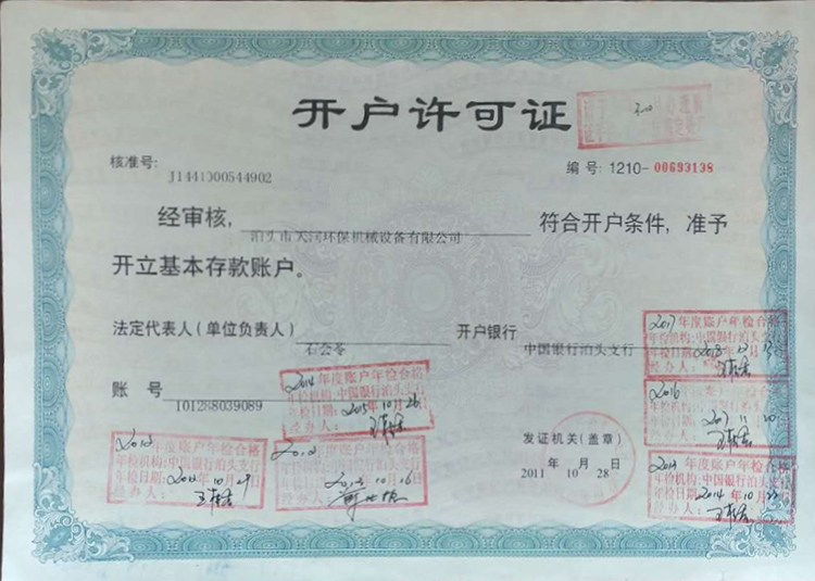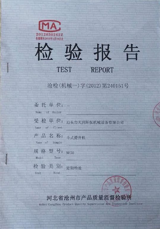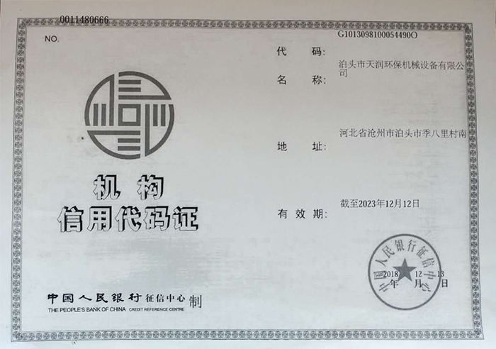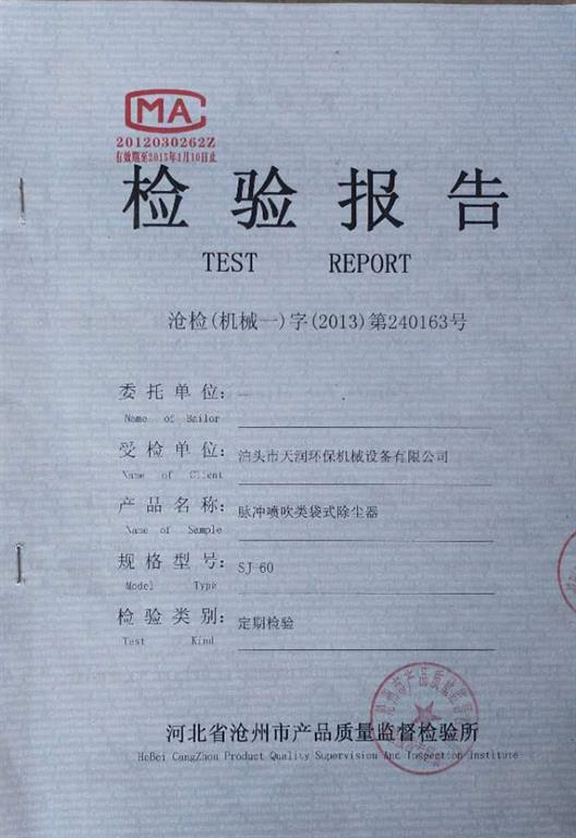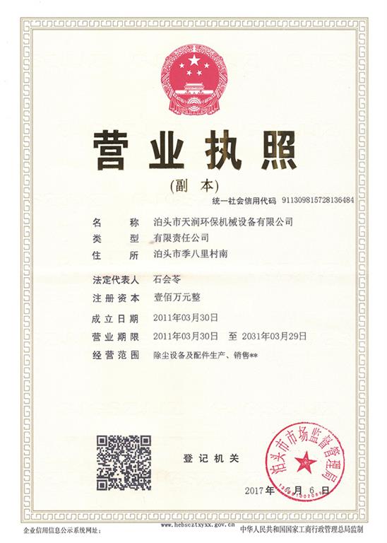 除塵器布袋骨架|除塵器濾袋-公司資質 -泊頭市天潤環(huán)保機械設備有限公司