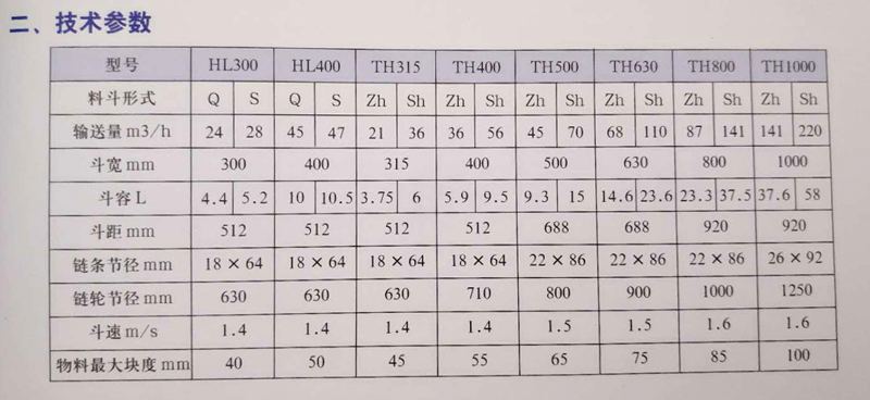 注:1. 表中斗容為計算斗容,輸送量按填充系數(shù)0.6計算得出。